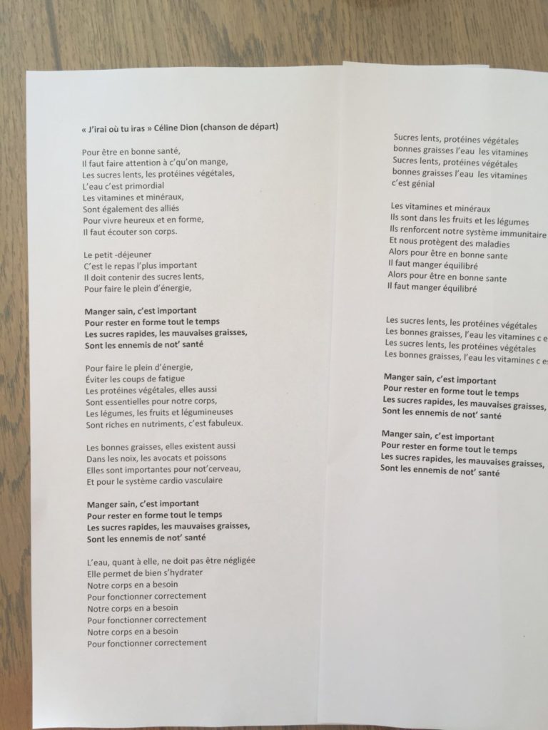 Echauffez-vous la voix et chantez votre plus belle chanson (inventée ou déjà connue) sur l’alimentation saine.