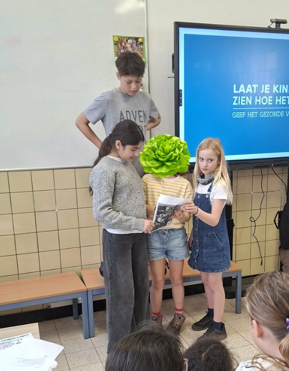 De leerlingen werkten in kleine groepjes en bedachten samen een liedje over gezonde voeding. Nadien brachten ze hun creaties voor elkaar en genoten ze van elkaars optredens.