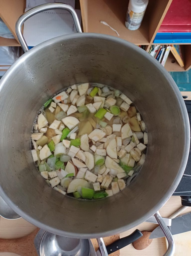 Nous avons fait de la soupe avec tous les légumes que nous avons apportés. Nous l'avons partagée, elle était délicieuse.