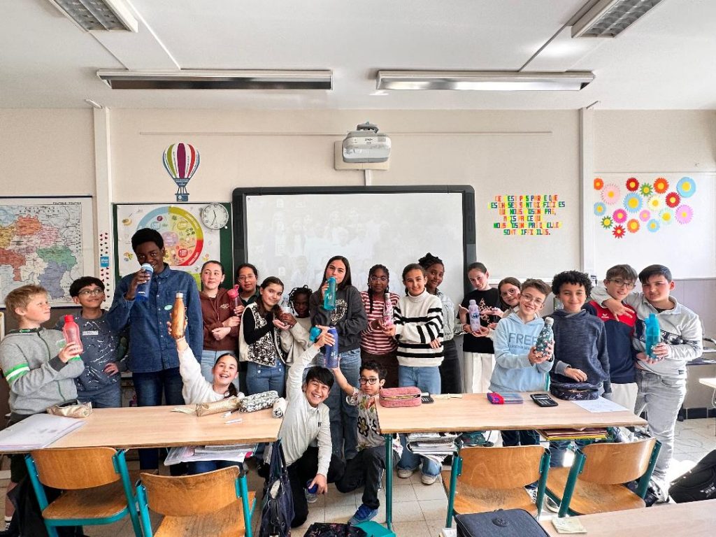 Plusieurs fois sur la journée, les élèves de la classe ont la possibilité de boire grâce à leur gourde.