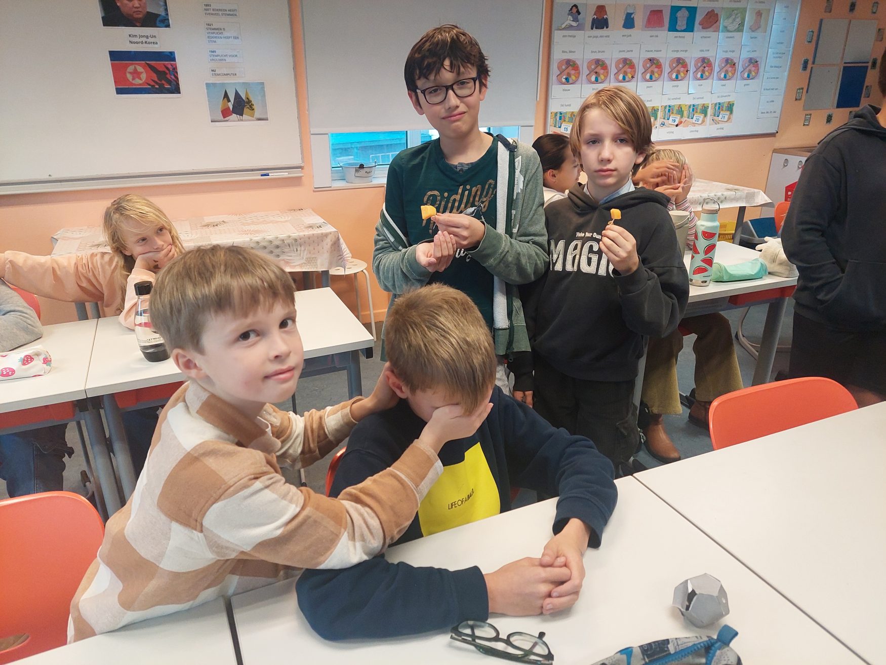 Lorsque tu manges quelque chose, tu regardes normalement ce que tu mets dans ta bouche. Mais si tu ne peux pas le voir, tu dois te fier à ton gout et ta langue. Dans ce jeu, vous allez faire goûter des fruits et légumes de saison aux élèves d'une autre classe. Ils découvriront ainsi cette nouvelle expérience de dégustation à l’aveugle et devront ensuite reconnaitre ce qu’ils ont en bouche.