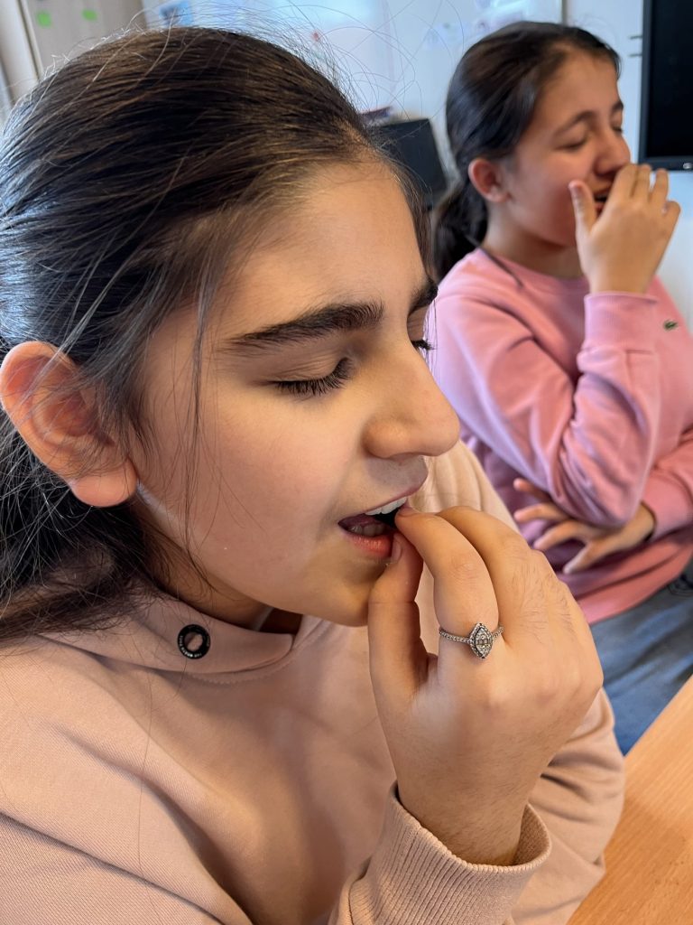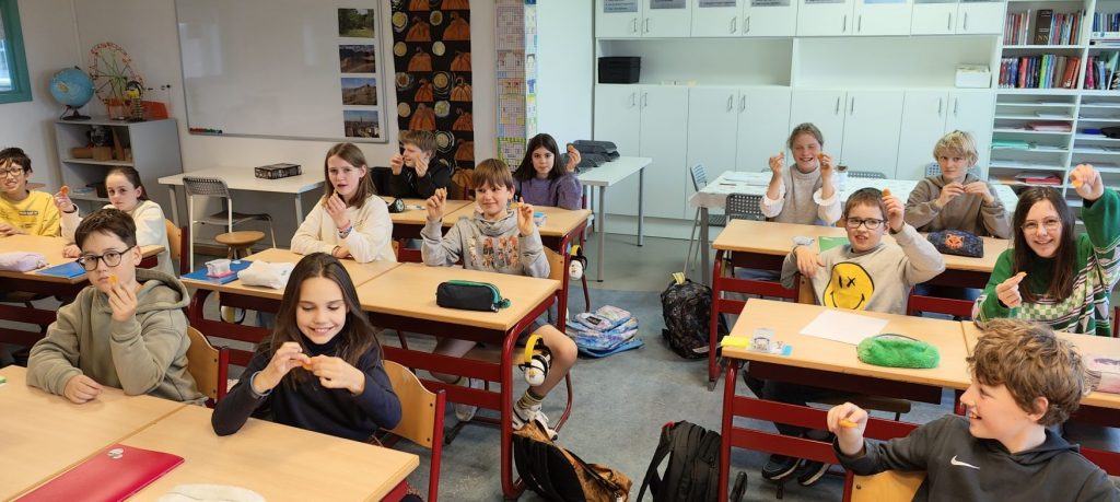 Conseil pour l'enseignant : prévoyez une serviette pour chaque élève, au cas où il voudrait recracher/jeter la nourriture. Laissez vos élèves choisir l'étape à laquelle ils s'arrêtent. Cet exercice permet aux élèves de faire l'expérience d'une alimentation réfléchie, en conscience.