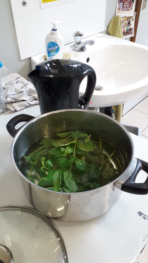 Nous avons profité de la leçon sur les 5 sens pour toucher la menthe, l'observer, la sentir, la goûter et la faire infuser. Ensuite, nous avons partagé cette délicieuse boisson très simple à réaliser.