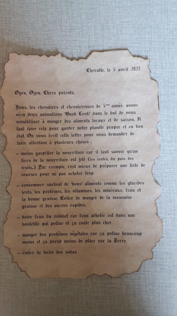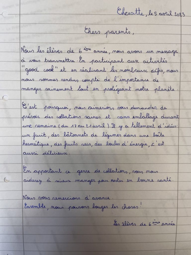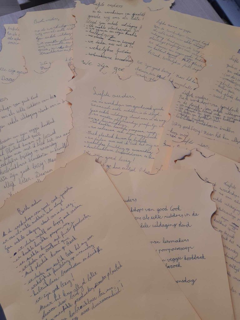 na de questSchrijf een brief aan de ouders en vraag hen om gezonde, onverpakte tussendoortjes te kiezen