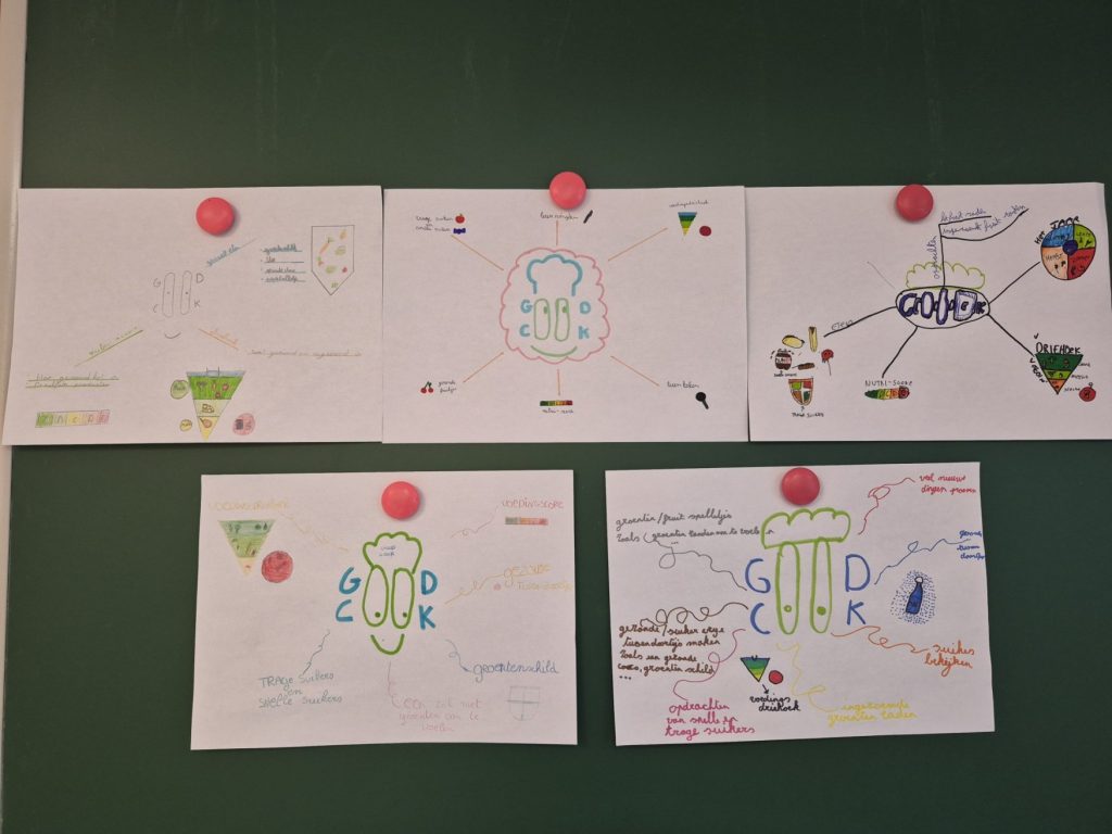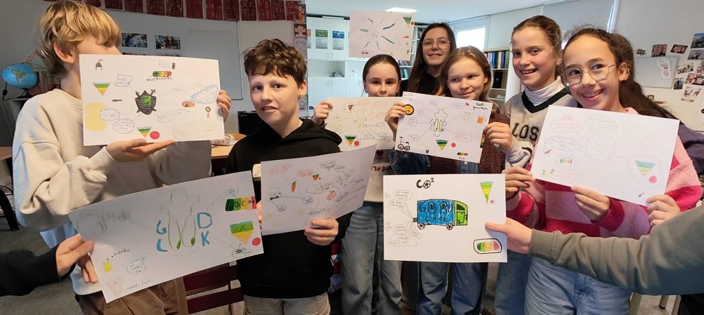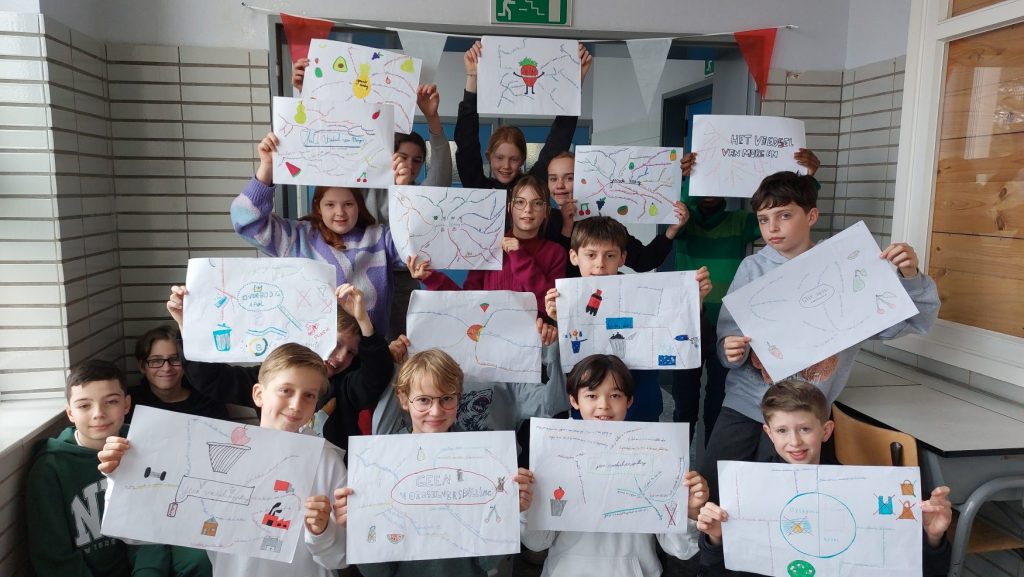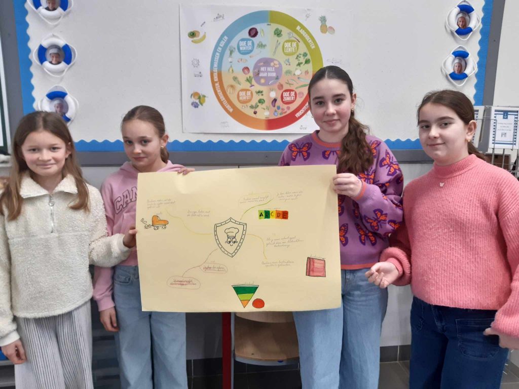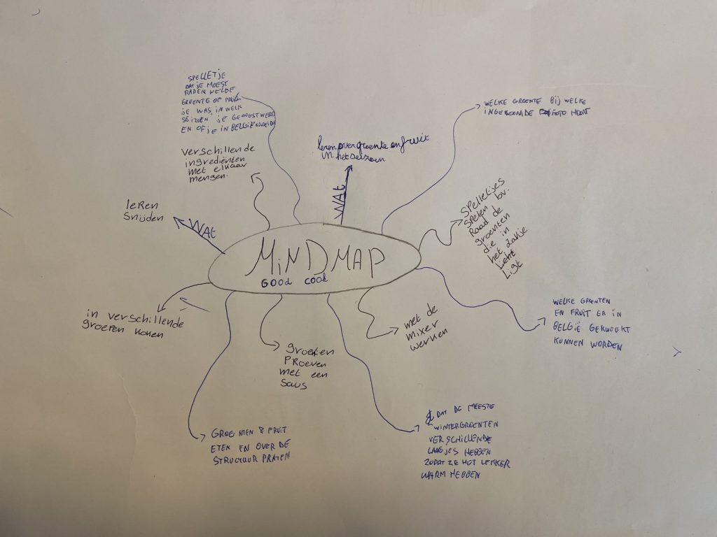 Maak een mindmap van wat jullie leerden tijdens de queeste. Deze gaat jullie helpen hier thuis en aan anderen over te vertellen. Zorg dat de verschillende queestes aan bod komen: eet meer plantaardig, vermijd overbodige verpakking, voorkom voedselverspilling, … Je kan ook per groepje een mindmap maken per queeste. We denken vaak in beelden, dus maak ook tekeningen in je mindmap.